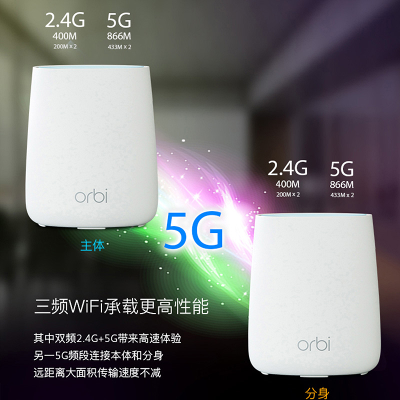 Netgear Full Gigabit Tri-band Mesh distributed Female Router 2200M wireless WiFi full house coverage netgear High-speed Orbi Mystery RBK20 23 free wiring