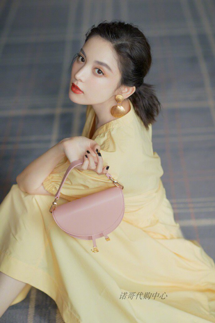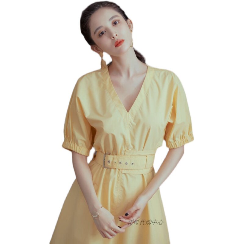 Gulianza Liu also stars in the same style as Spring Summer New V Collar Bubble sleeves Waist Display Slim and Yellow Ocean Dress