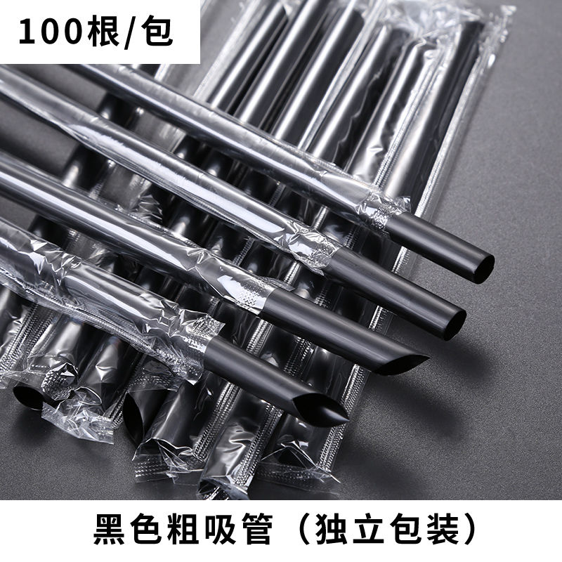 Independently packaged disposable pearl milk tea thick straw 16cm21cm23 commercial thickened black and white transparent straw