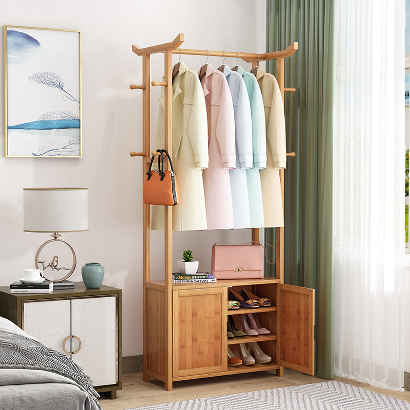 Hanging hanger floor bedroom home solid wood simple modern living room clothes rack simple wardrobe shoe cabinet type coat rack