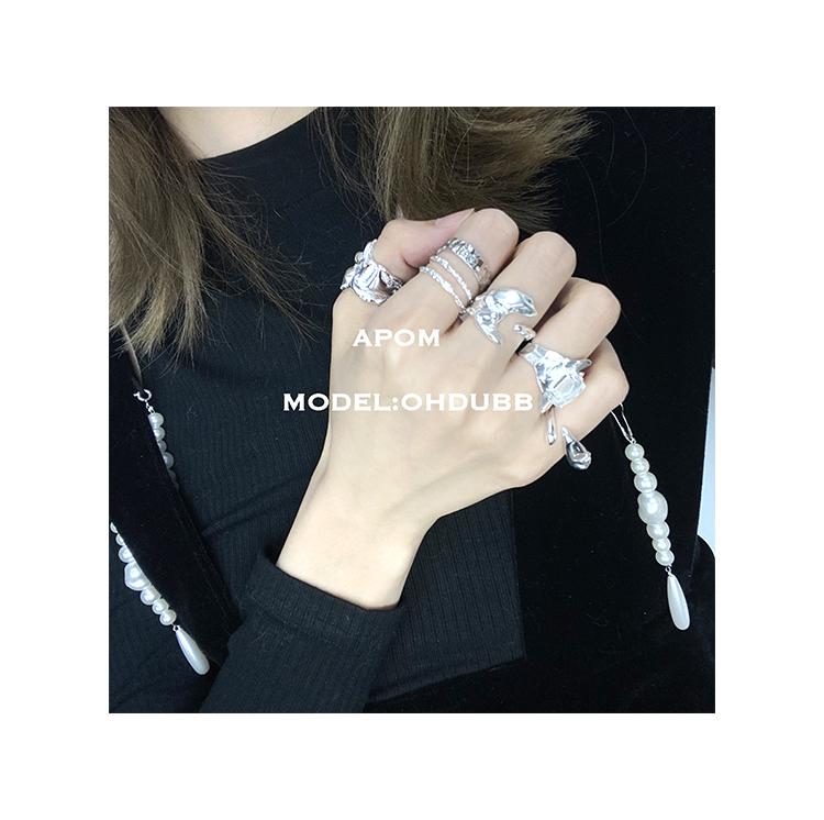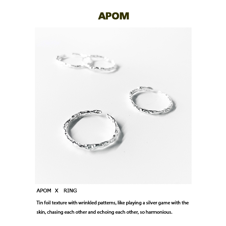 APOM Skin Game 925 Sterling Silver Minority Tin Foil Texture Circle Men's and Women's Opening Combination Ring Cold Style
