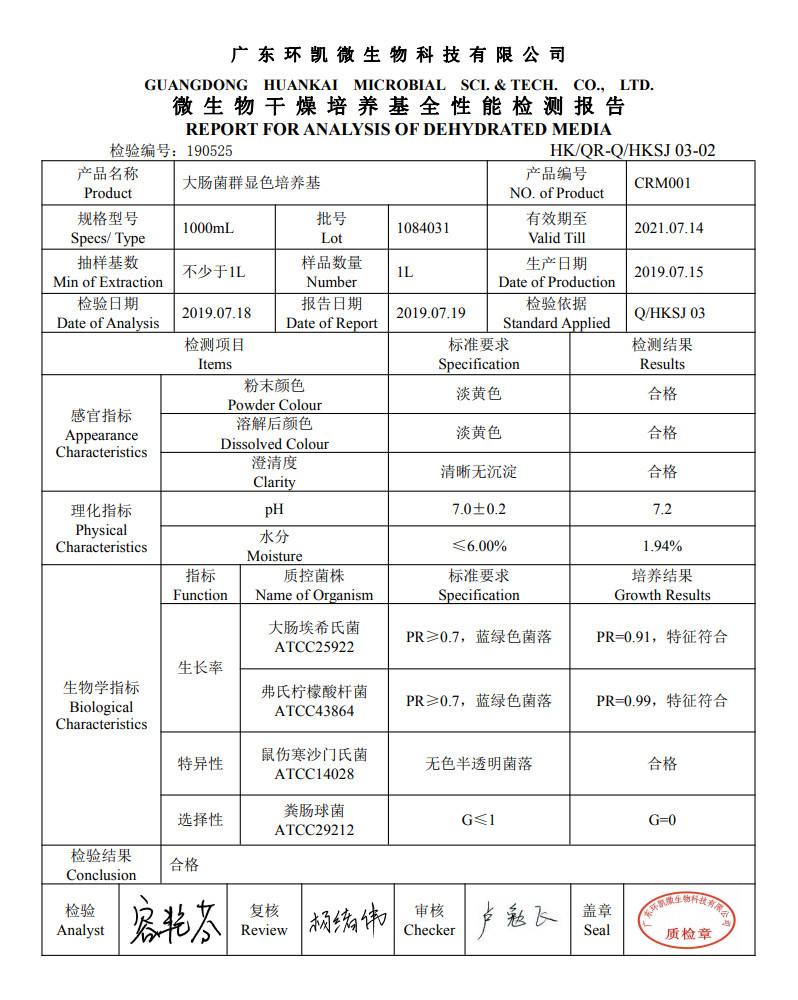 Color Refining Medium of Colorectal Medium 1000ml Flat Test Guangdong CRM001