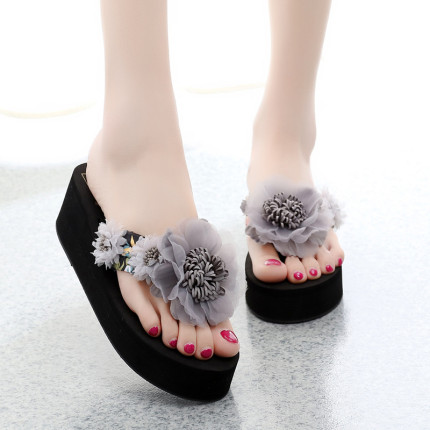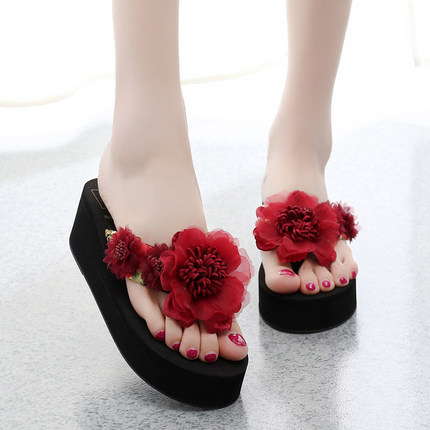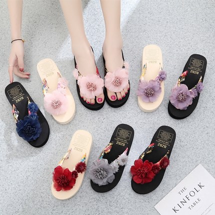 Special cabinet new ethnic wind beach slippers female summer seaside anti-slip thick bottom herringbone tug outside wearing fashion wedge sandals