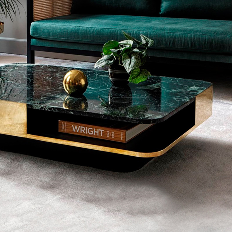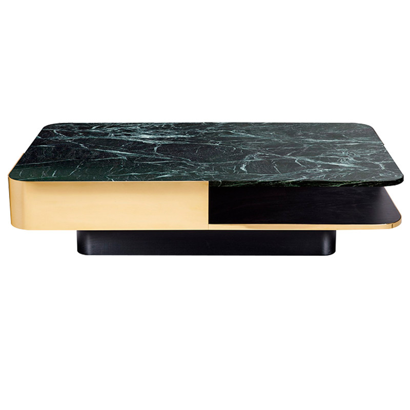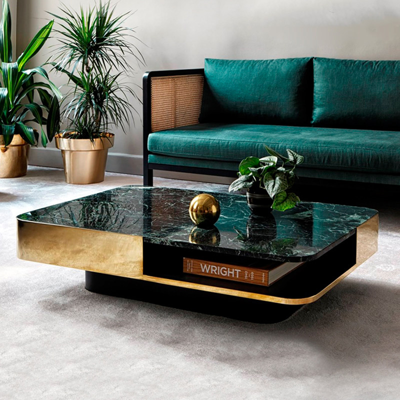 Light luxury post-modern natural marble storage coffee table metal stainless steel minimalist high-end villa rectangular living room