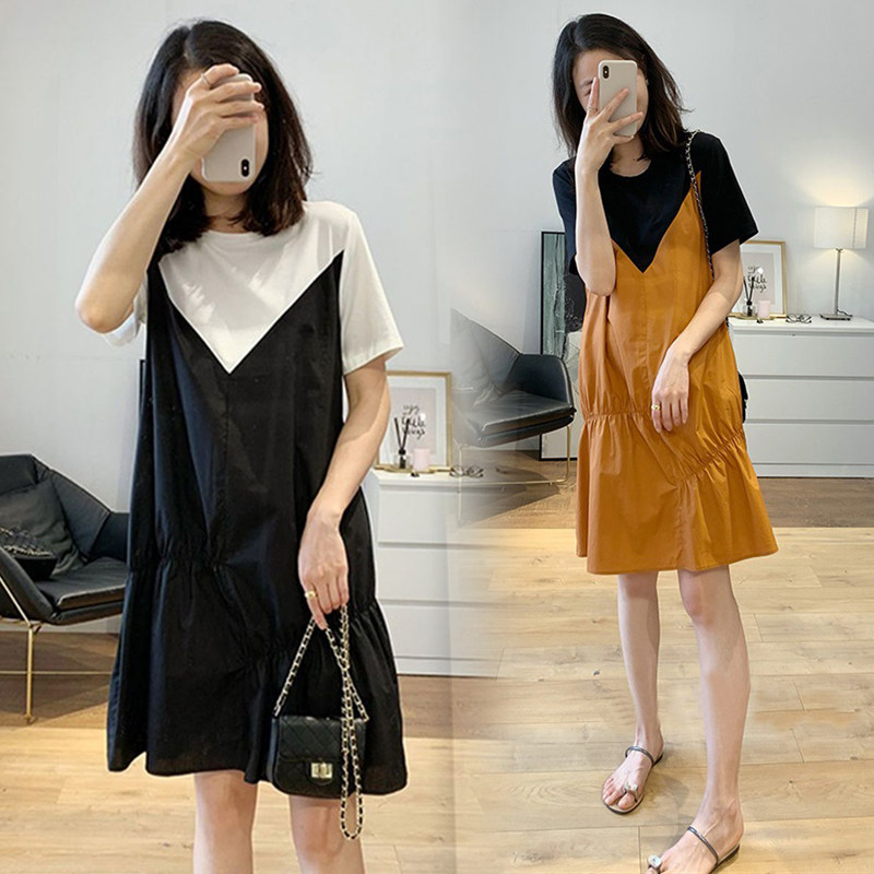Gestational Maternity dress for summer short sleeves Long version false Two surrogates Belly Blouse Loose large size Personality Pregnant Woman Dress
