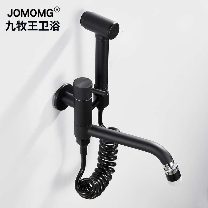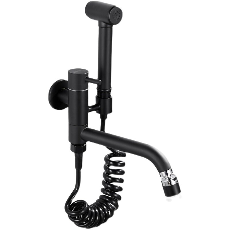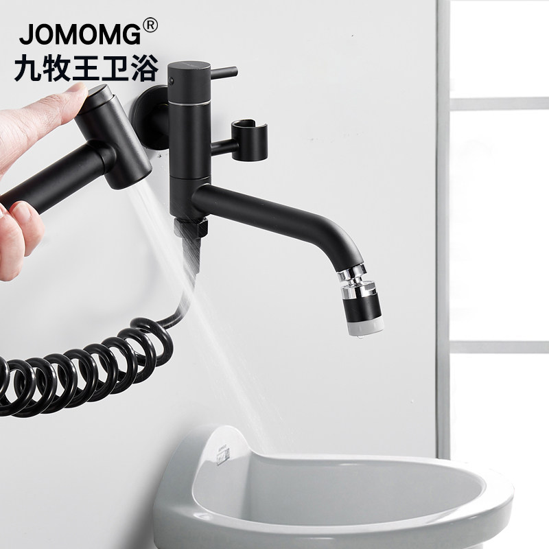 All-copper water cage head single-cold mop pool faucet one in, two out, lengthened double-use double-head with spray gun rotating nozzle