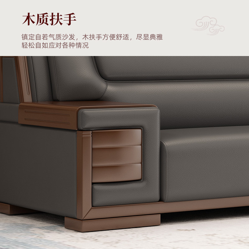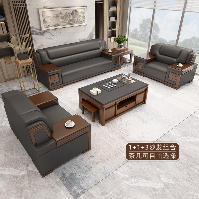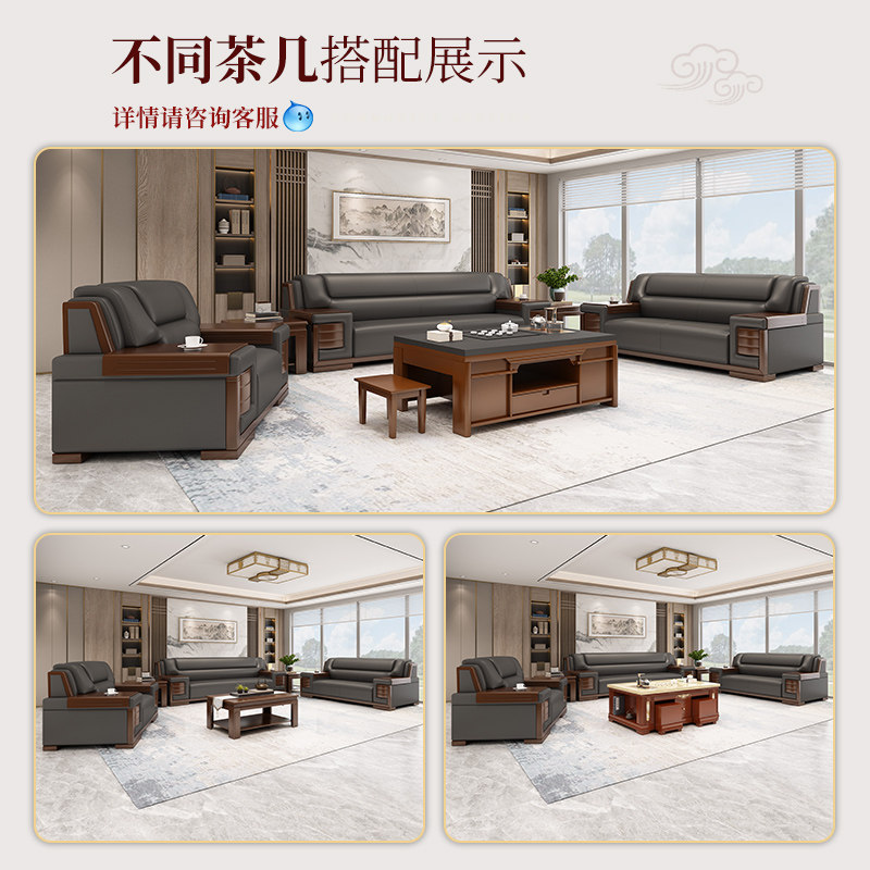 Office sofa walnut color new Chinese VIP hotel business reception meeting negotiation tea table combination leather sofa