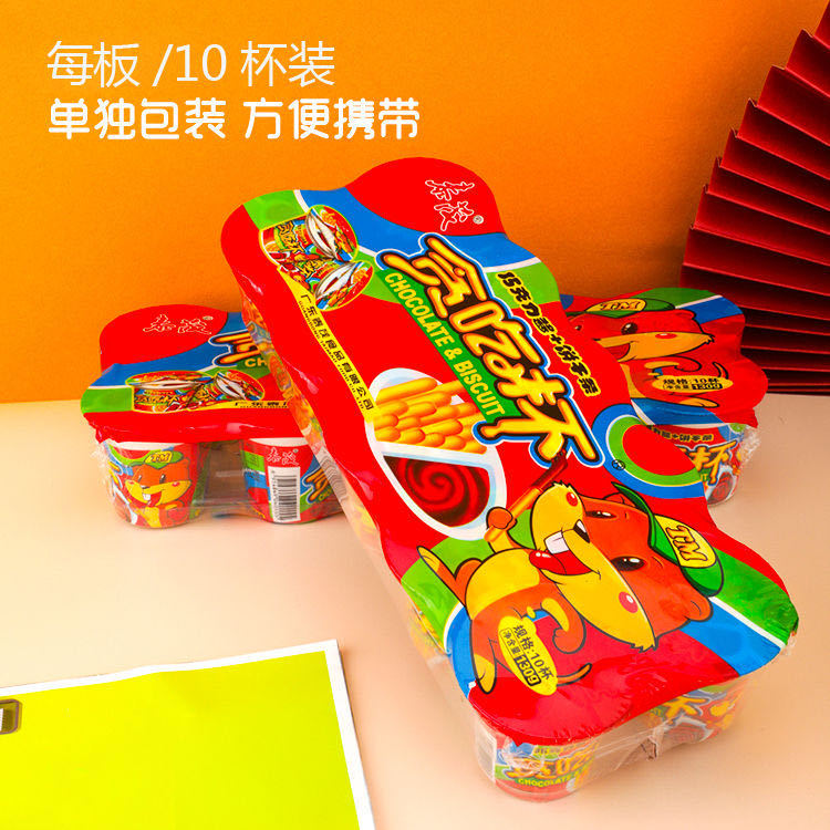 8090 nostalgic snacks Taimao greed for a cup of chocolate dipping sauce Biscuits Finger Cookies Small Cups Children Snacks Gifts