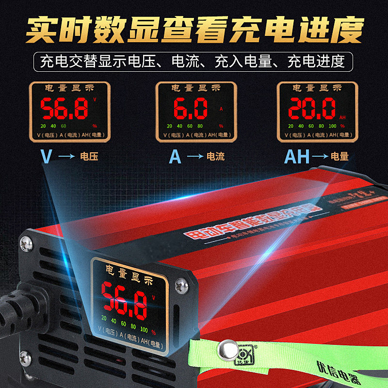 Electric vehicle lithium battery charger 60v5a intelligent microcomputer digital display 10a17 string iron phosphate electric vehicle three holes