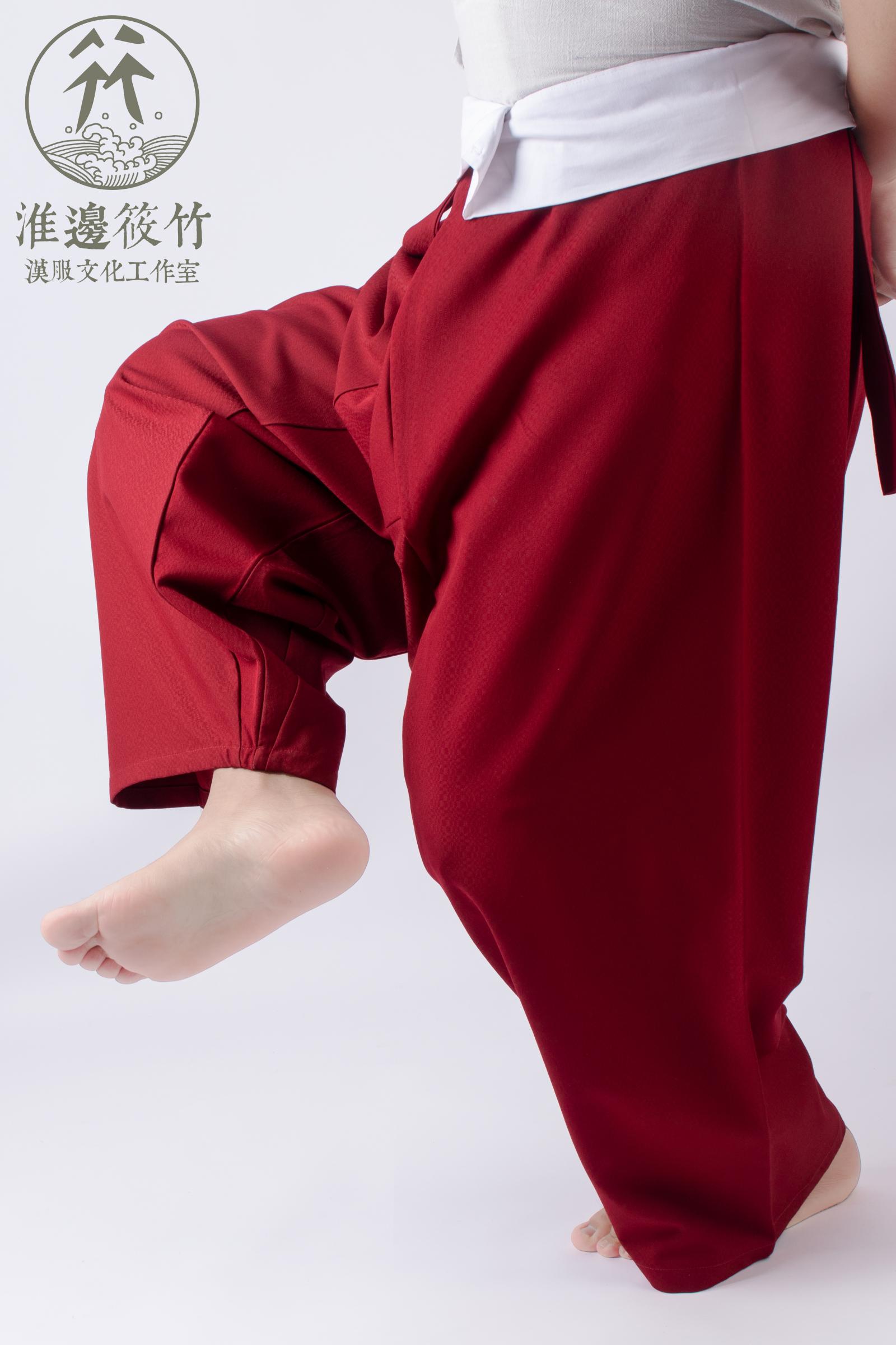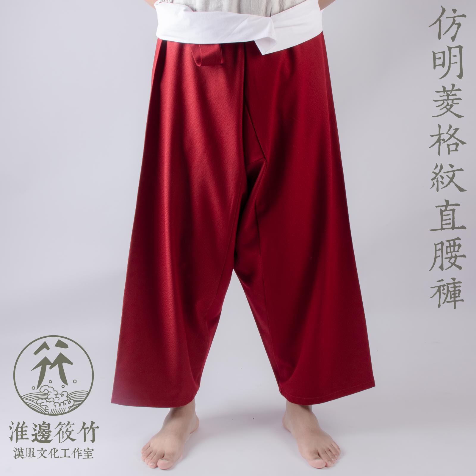 Huaibian Xiaozhu Dark pattern straight waist pants spot Hanfu crotch pants large hakama ming system to restore the original Dingling men's and women's pants five points pants