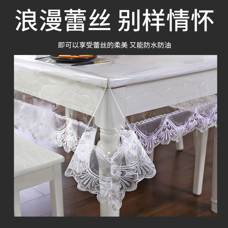 pvc table cloth waterproof oil protection free wash transparent table cushion lace soft glass plastic rectangular tea table table cloth