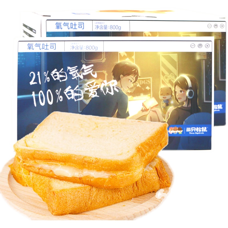 Three Squirrels Oxygen Toast Bread Whole Boxes Sandwich Toast Pocket Bread Breakfast Night Snack Plus Meals Snack