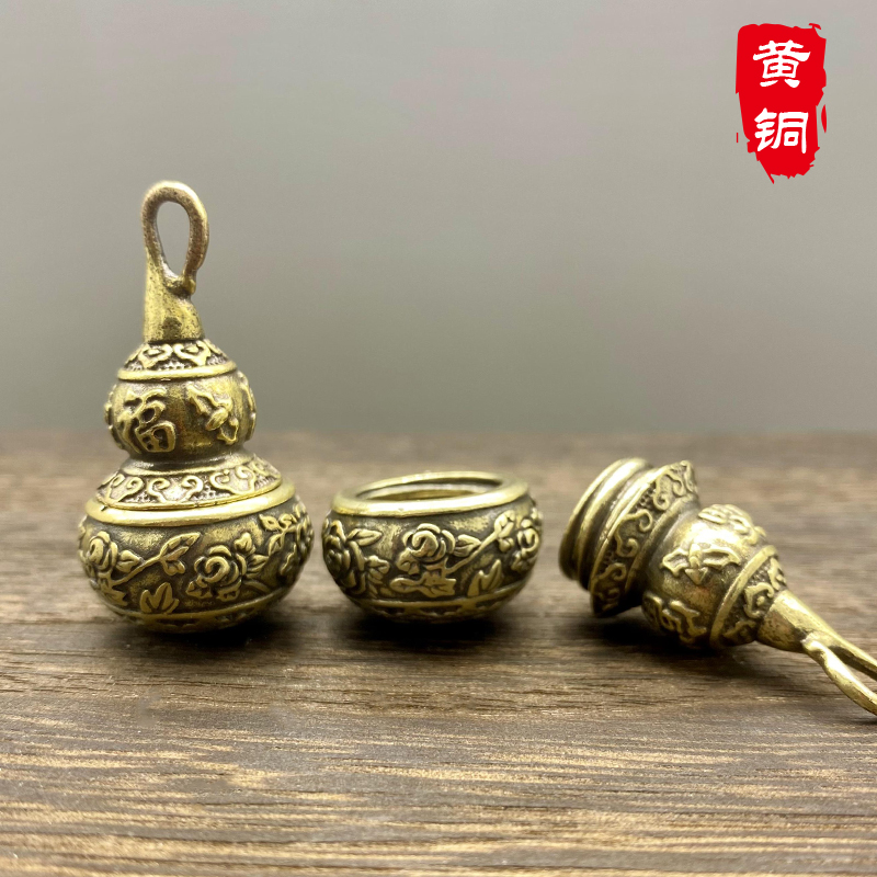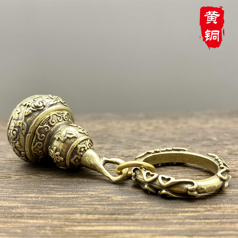 Creative pure copper handmade flowers open rich hollow gourd car key chain brass key chain small pendant pendant male