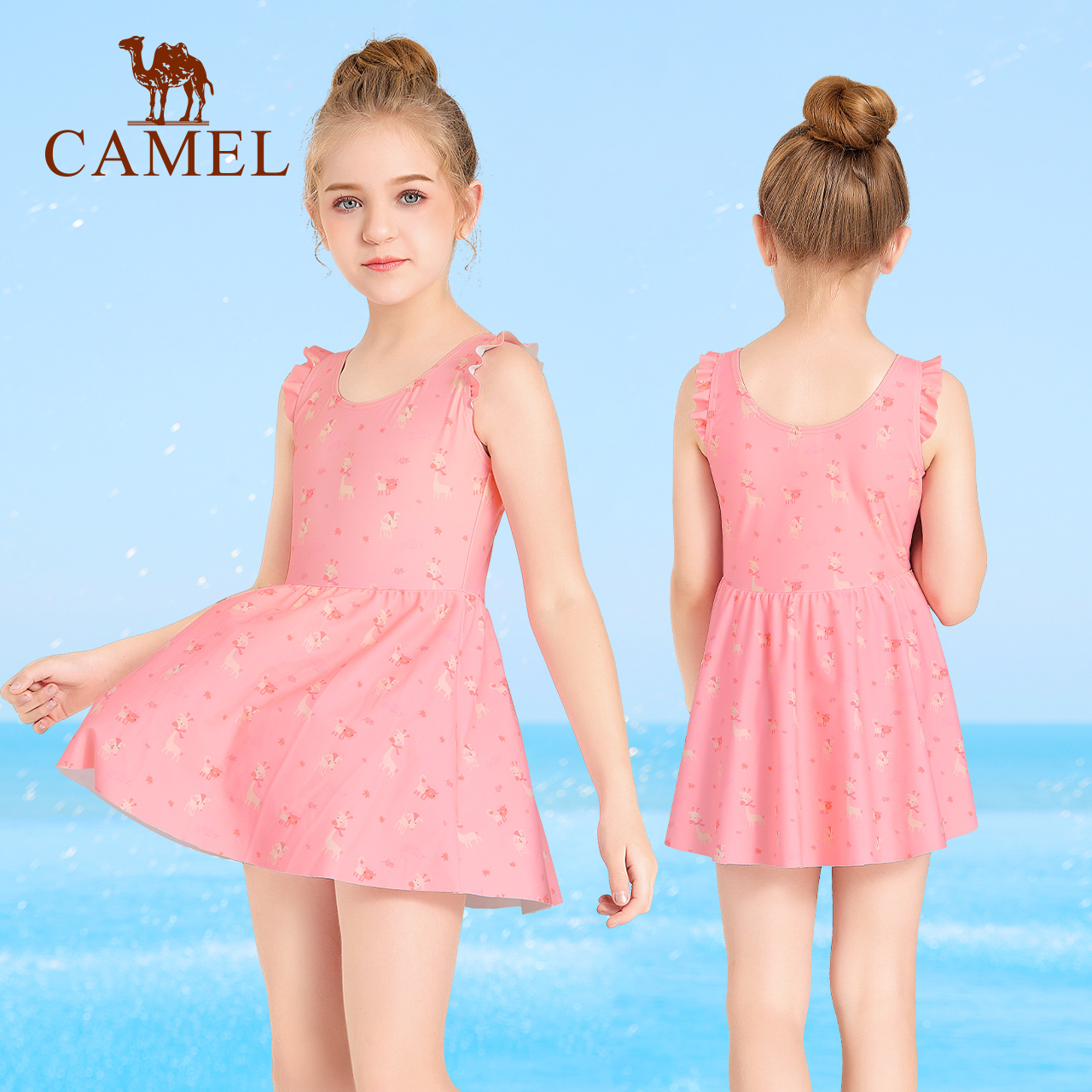 Camel children's one-piece swimsuit for girls, medium and large children's swimsuit, little princess baby swimsuit, seaside hot spring swimsuit