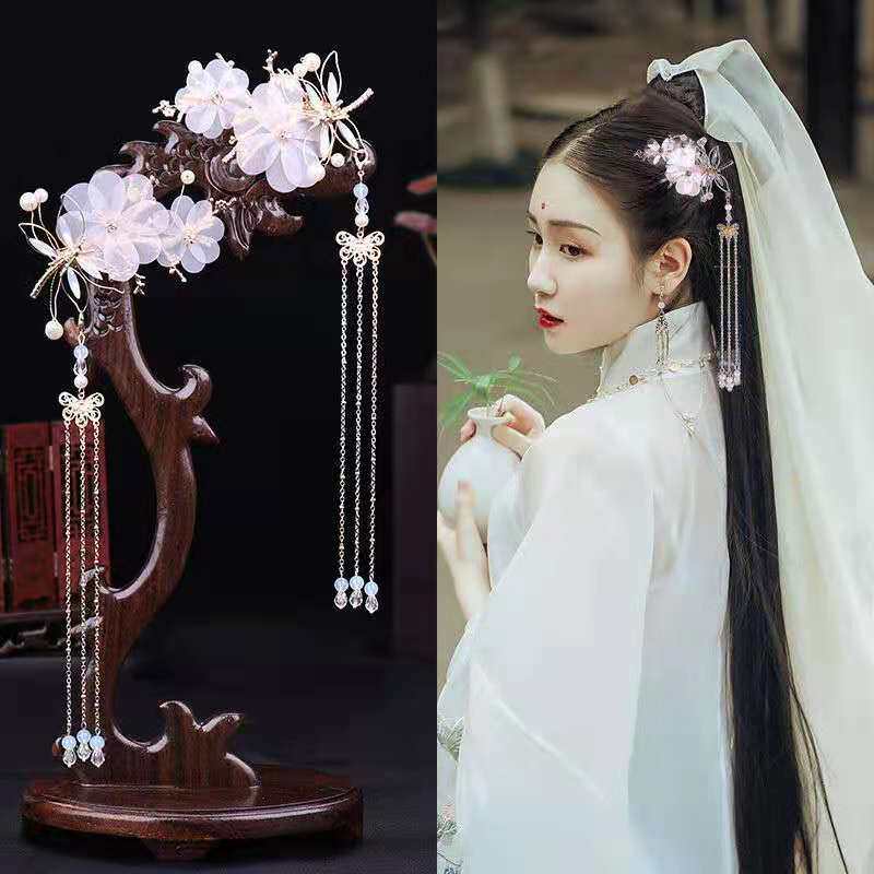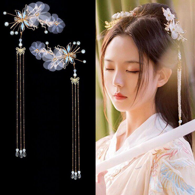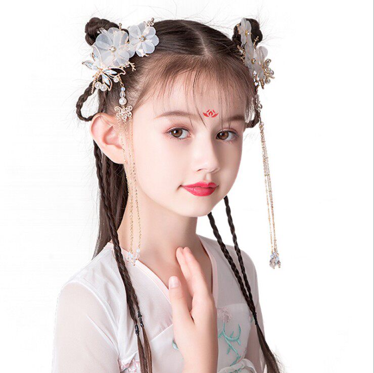 Hanfu headdress clip antique super fairy dragonfly tassel hairpin children's pair clip costume accessories full set of step-shaking hair accessories