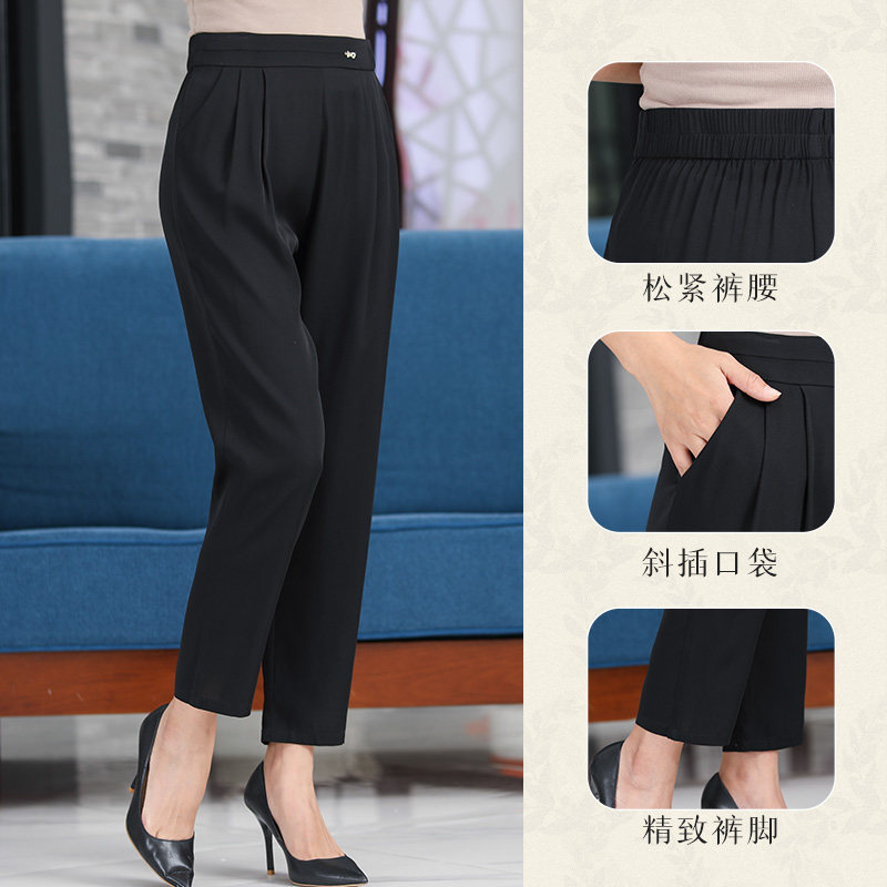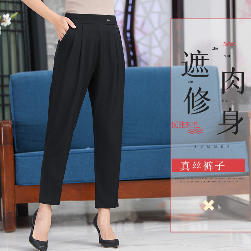 Mulberry Silkworm Silk Mom Pants Children Real Silk Pants Kharen Pants 90% Pants Summer Loose Thin with loose waist and high waist