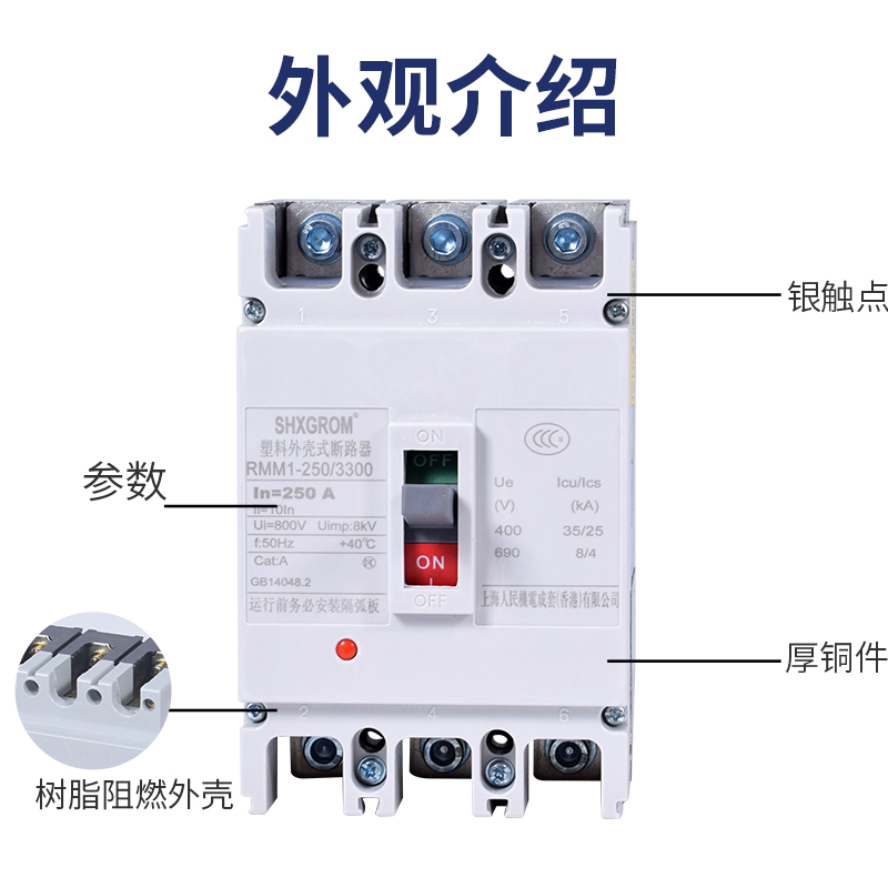 RMM1 air switch plastic case shell circuit breaker 225A400A 630A80A 100A NM1 CM1