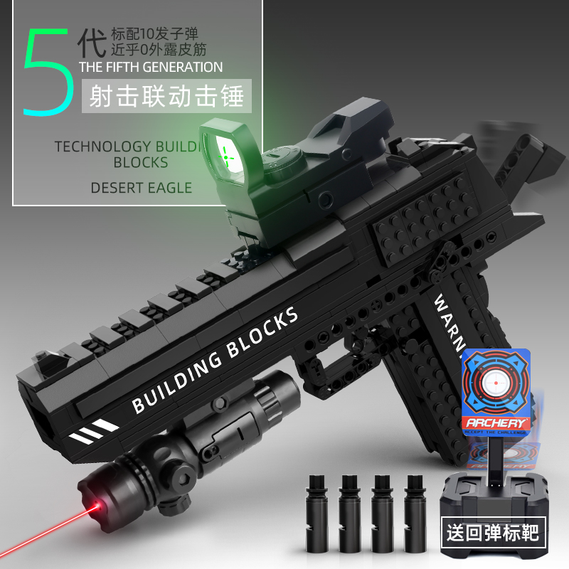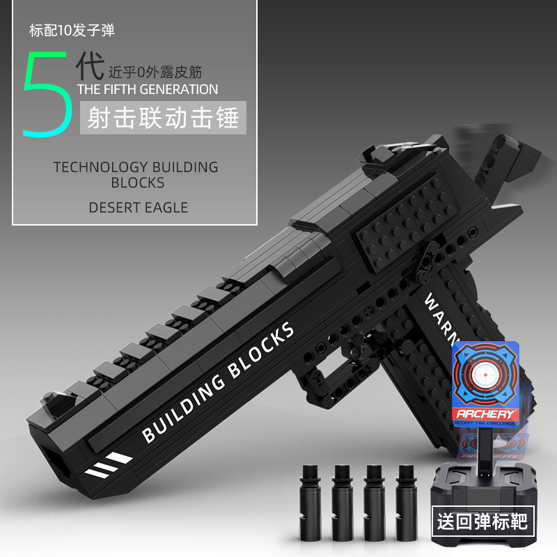 Building blocks guns 5 Gen Desert Eagle can launch Bullets Assembled Children Toy Guns Snatched High Difficulty Boy Guns