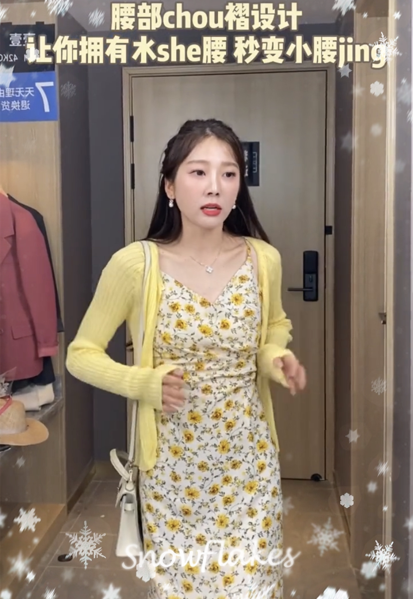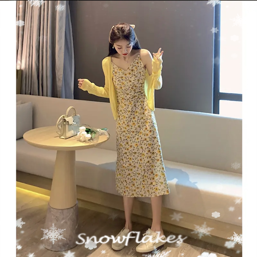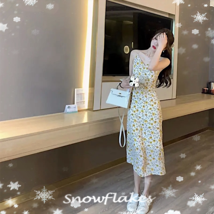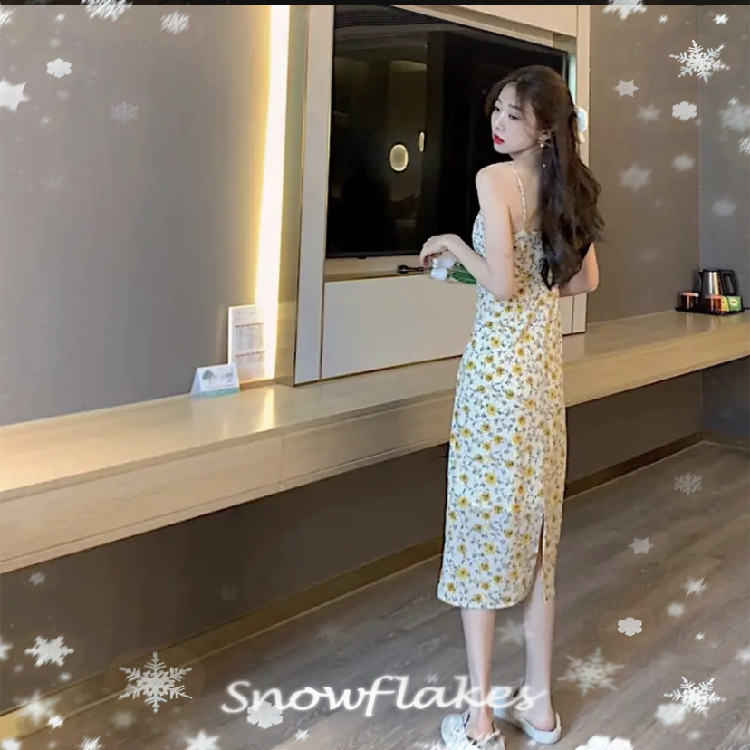 Spring Flower Language Floral Suspender Dress Slim Slim Mid-length Dress Sweet Princess Fan