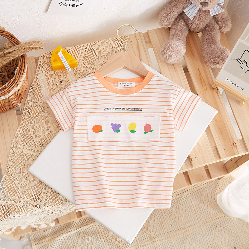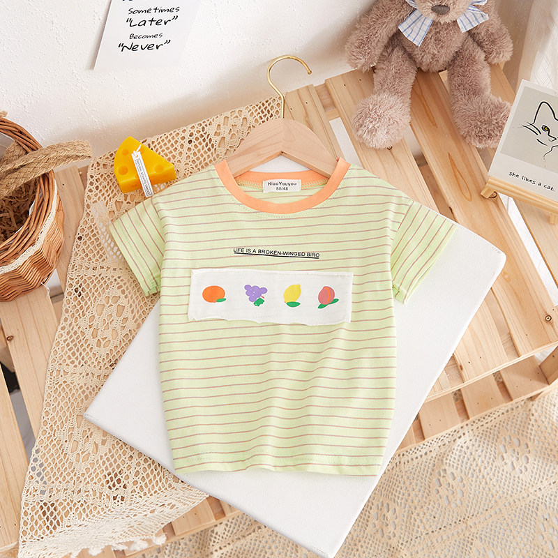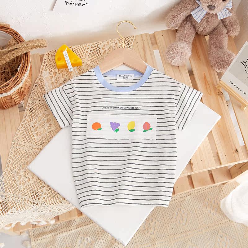 2021 Summer new children's clothing Korean version striped summer dress Sweat Pure Cotton Short Sleeve Loose striped female baby T-shirt