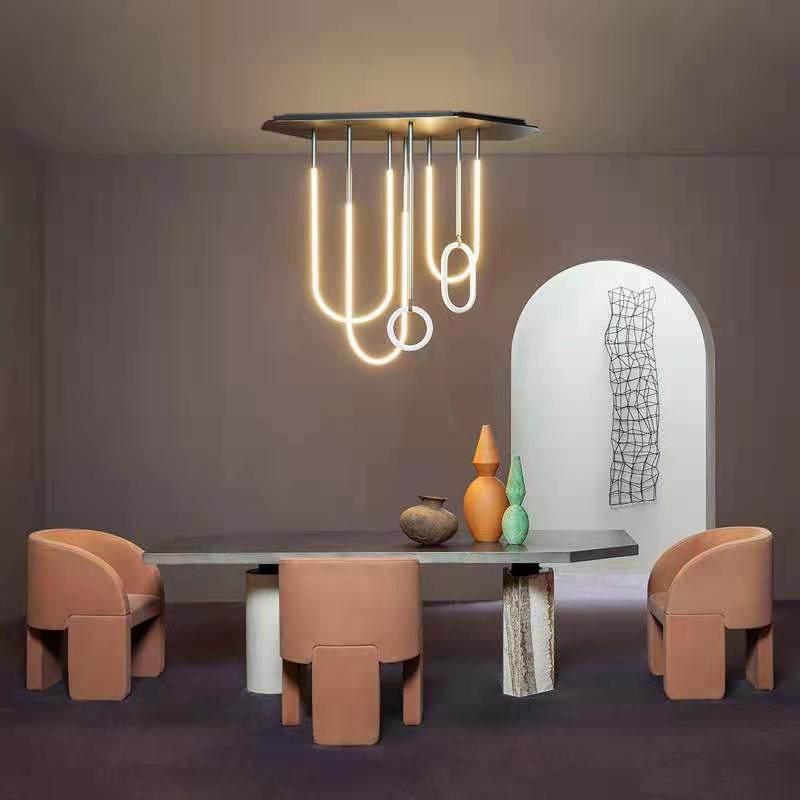 Post-modern light luxury living room LED bedroom ceiling lamp Hong Kong style minimalist creative designer Italian restaurant U-shaped chandelier