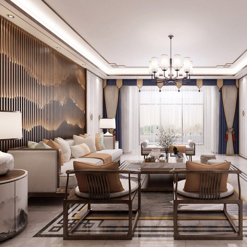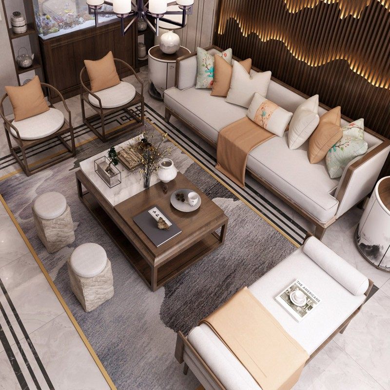 New Chinese style solid wood sofa dining chair combination modern fabric villa living room homestay clubhouse Chinese style furniture customization