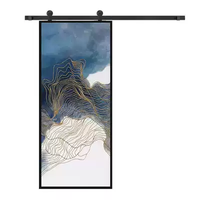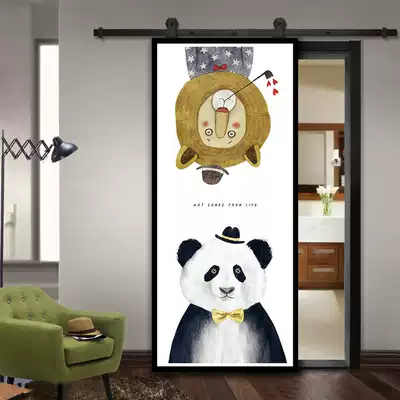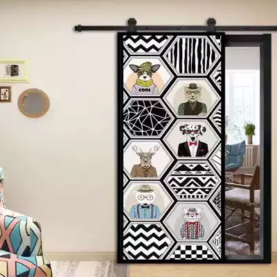 Nordic color carving barn door sliding door solid wood composite color carving door warehouse Valley hanging door kitchen dressing room custom room moving door customization