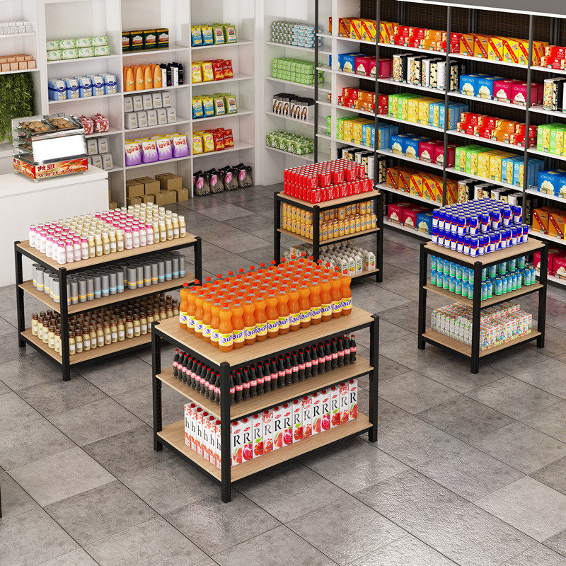 Supermarket milk steel and wood shelves Gift shelves Grain and oil rice and noodles milk stack shelves floor stack promotion table display display stand