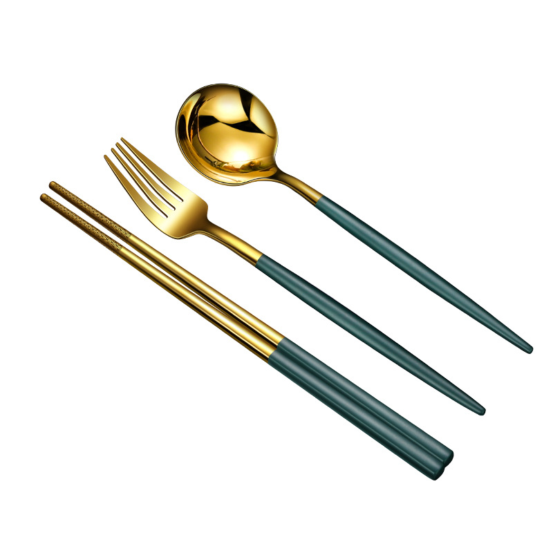 Kitchen Guido 304 stainless steel portable cutlery student Chopsticks Fork Spoon Stainless Steel Cutlery Sets of wind