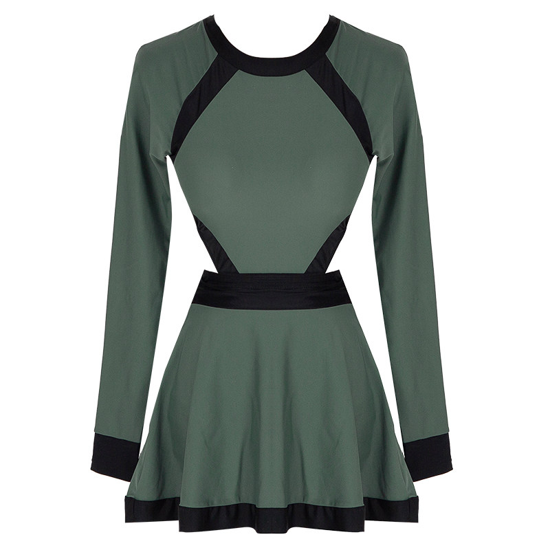 Korean ins show thin belly cover long sleeve sexy cutout small chest student hot spring one-piece swimsuit female fairy Fan conservative