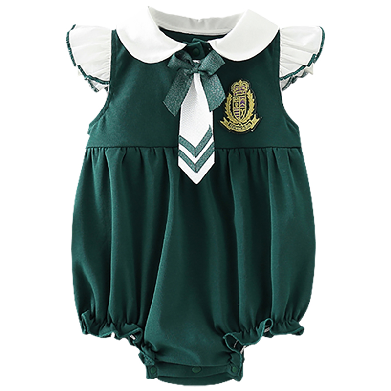 Summer Dress New Girl Short Sleeve Academy Wind Even Clothes Baby Newborn Foreign Pie Climbing Suit Full Moon Children Climbing