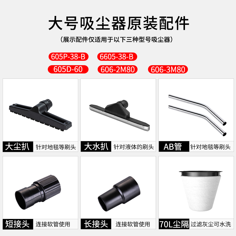 Bucket ear buckle small dust PA large water PA large rear wheel large long joint large short joint Large dust PA large flat suction stainless steel AB tube Stainless steel straight tube round brush head small water PA small hose Universal wheel small vacuum cleaner original