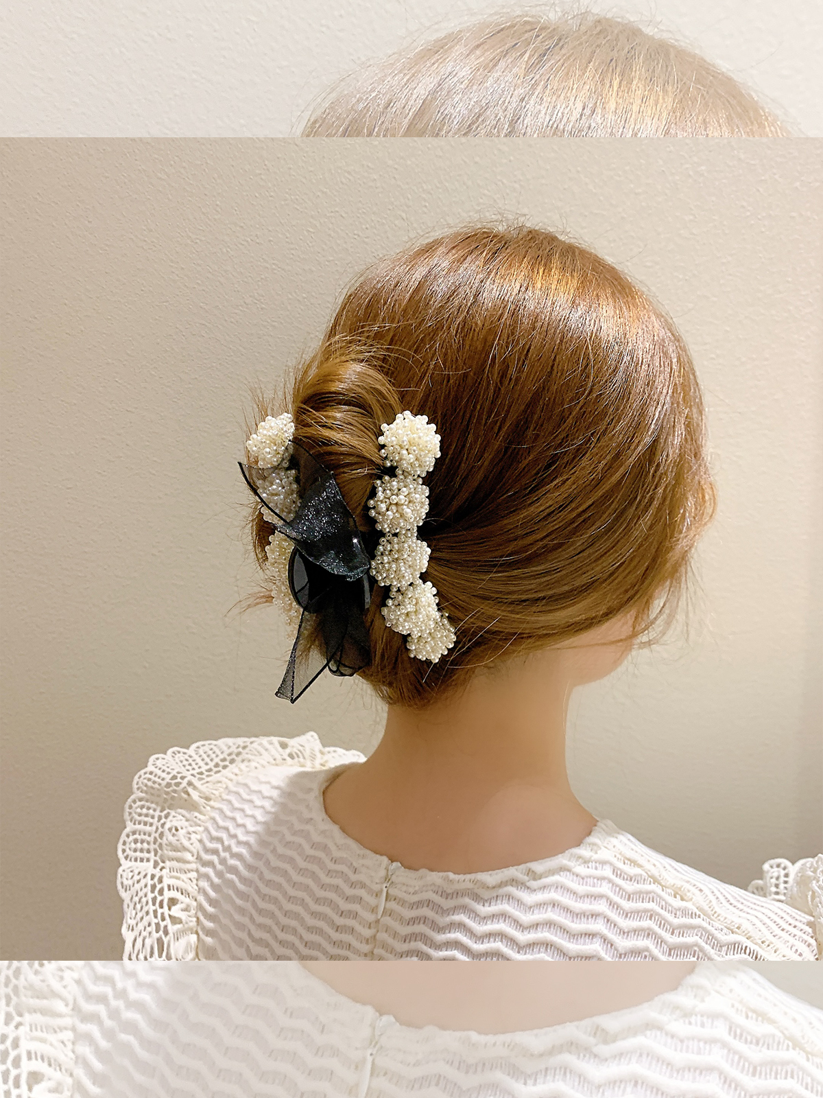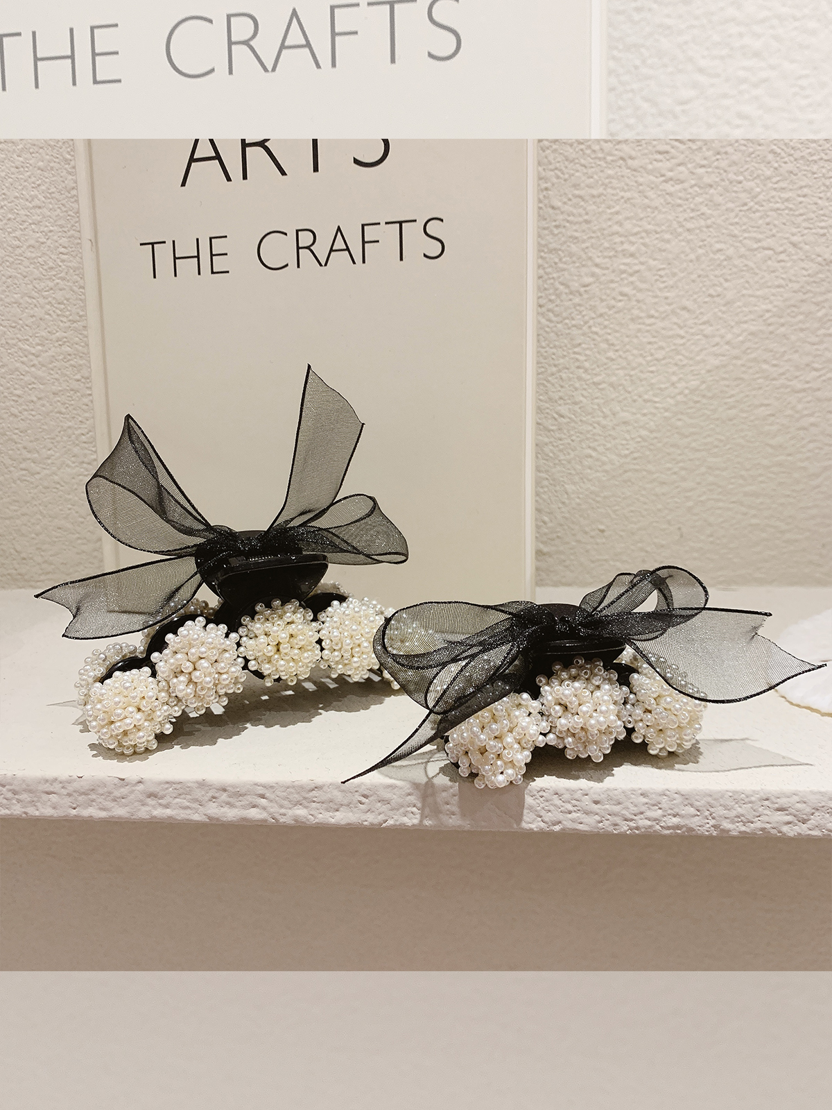 Korean Pearl Butterfly Knot Hair Accessories Grab Clip 2022 New Hairpin Girl Rear Brain Spoon Big Hair Grab Clip Shark Clip Tide