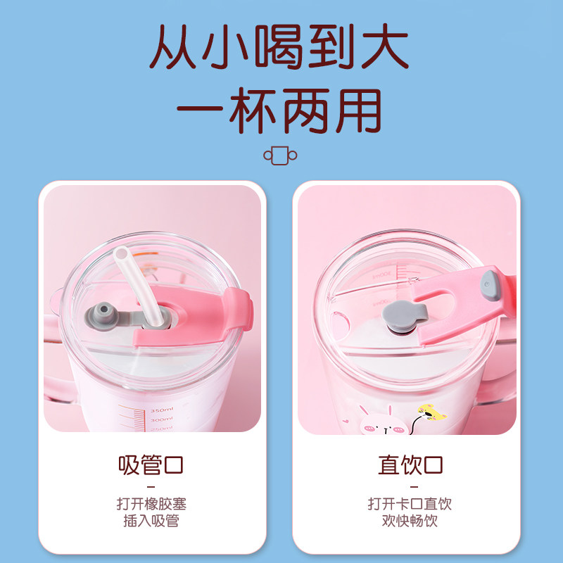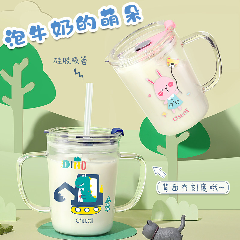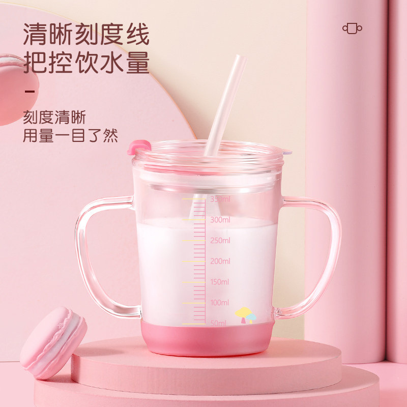 Children's milk cup with scale Baby drink milk powder glass microwave can be heated to brew special straw water cup