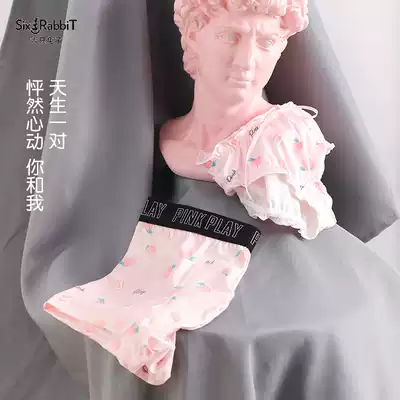 Six rabbits sweet Chinese Valentine's Day couple men's underwear high-elastic skin-friendly milk Silk women's middle waist shorts