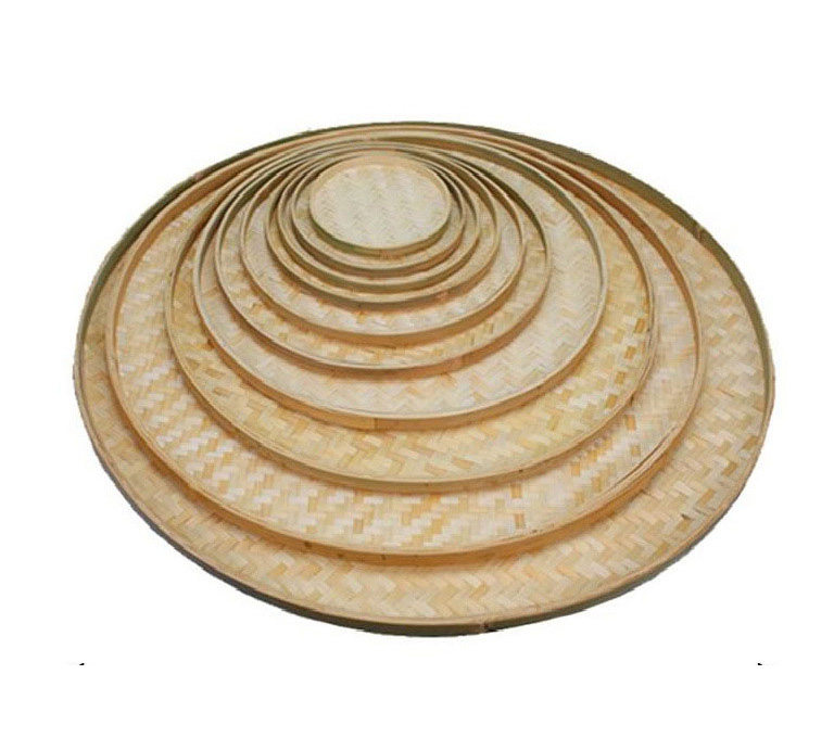 Bamboo weaving round dustpan handmade bamboo dustpan drying household dustpan head layer bamboo green dustpan decorative painting performance props