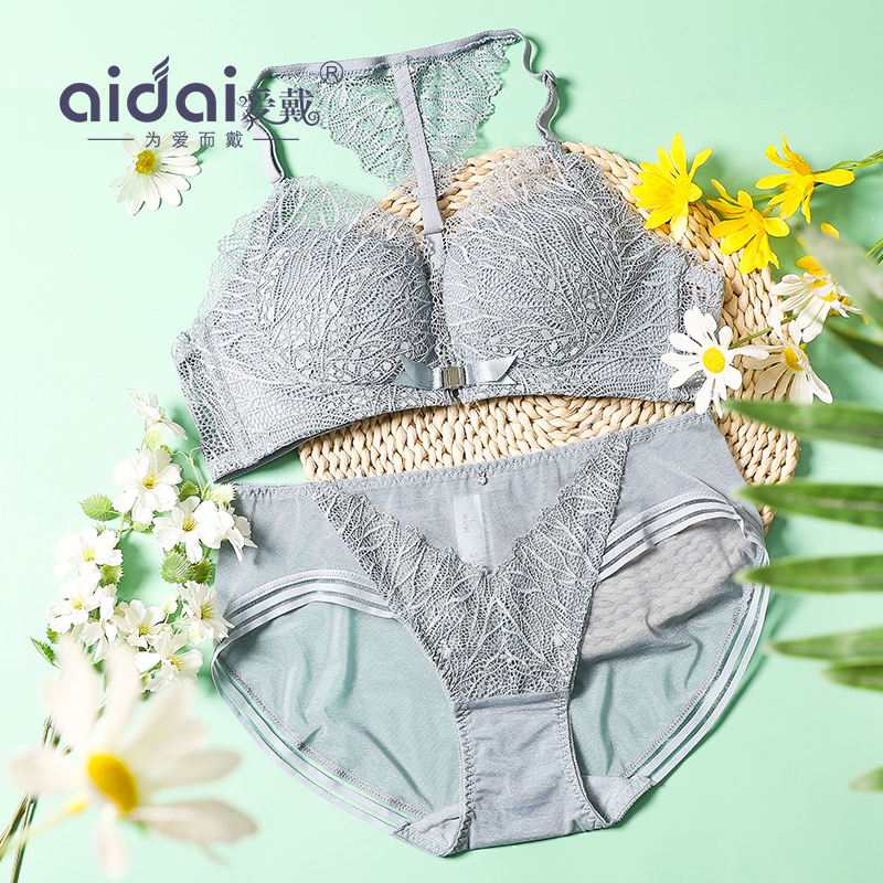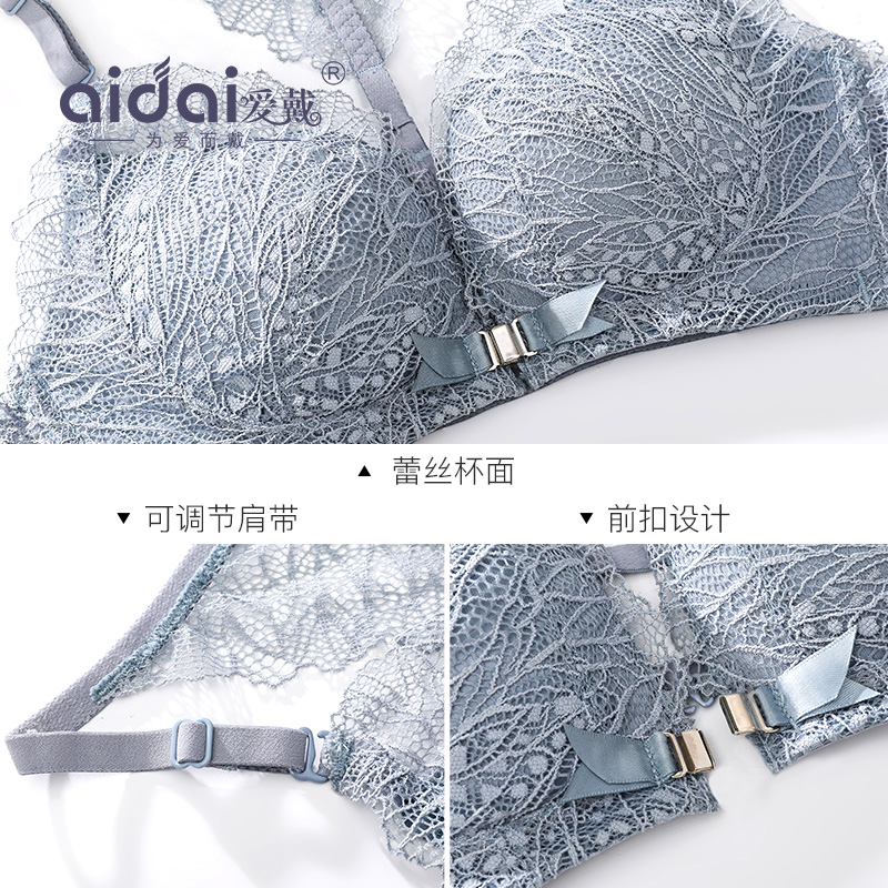 Love to wear a beautiful back bra Summer lace thin section Gather Fine Shoulder Strap Front Button No Steel Ring Girl Lingerie Suit Sexy
