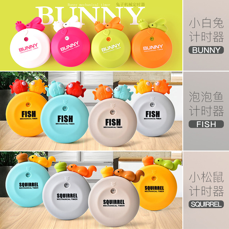 Radish rabbit Bubble fish timer Kitchen mechanical timer Children's learning reminder Student dual-use alarm clock