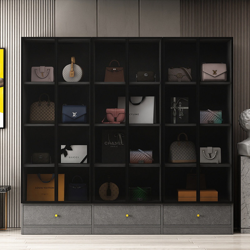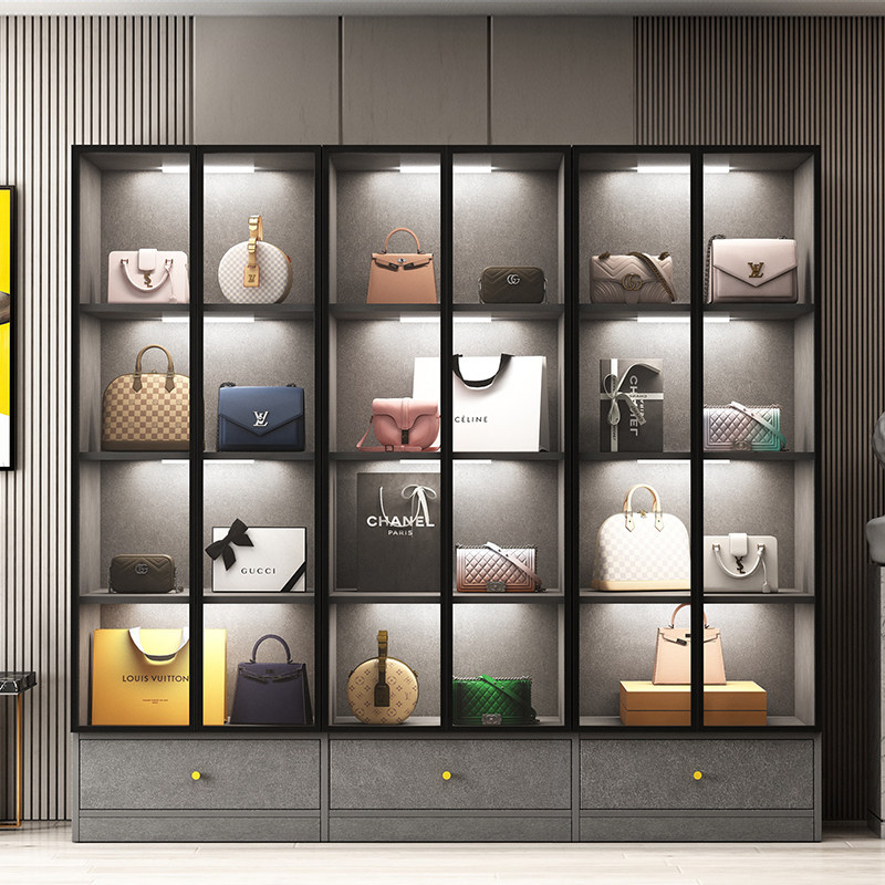 Light luxury storage cabinet shoe cabinet bag cabinet home floor-to-ceiling glass door display cabinet modern minimalist lattice storage cabinet