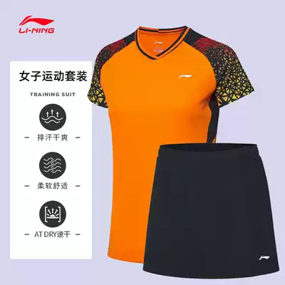 Li Ning women's sports suit badminton suit quick-drying two-piece short sleeve skirt fitness suit