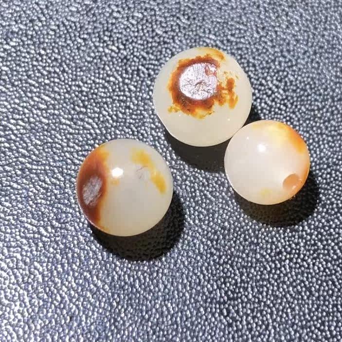 Natural Xinjiang Hetian Jade Seed Material Jasper White Jade Round Beads Single Beads Collection Grade Authentic Hetian Jade Beads with Skin