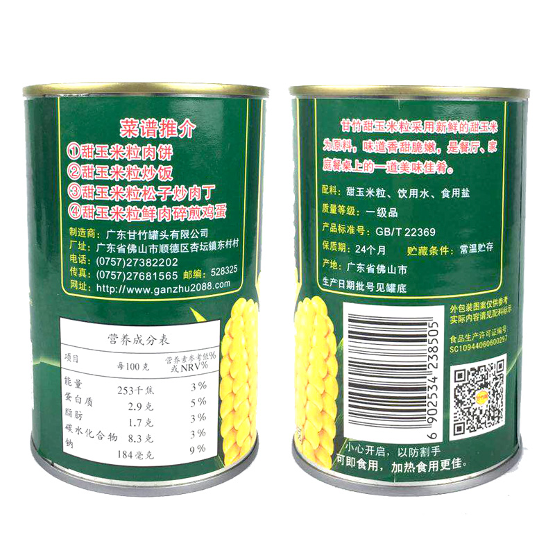 Ganzhu sweet corn grain cans 425g * 5 cans fresh corn grain salad instant food convenient baking raw material