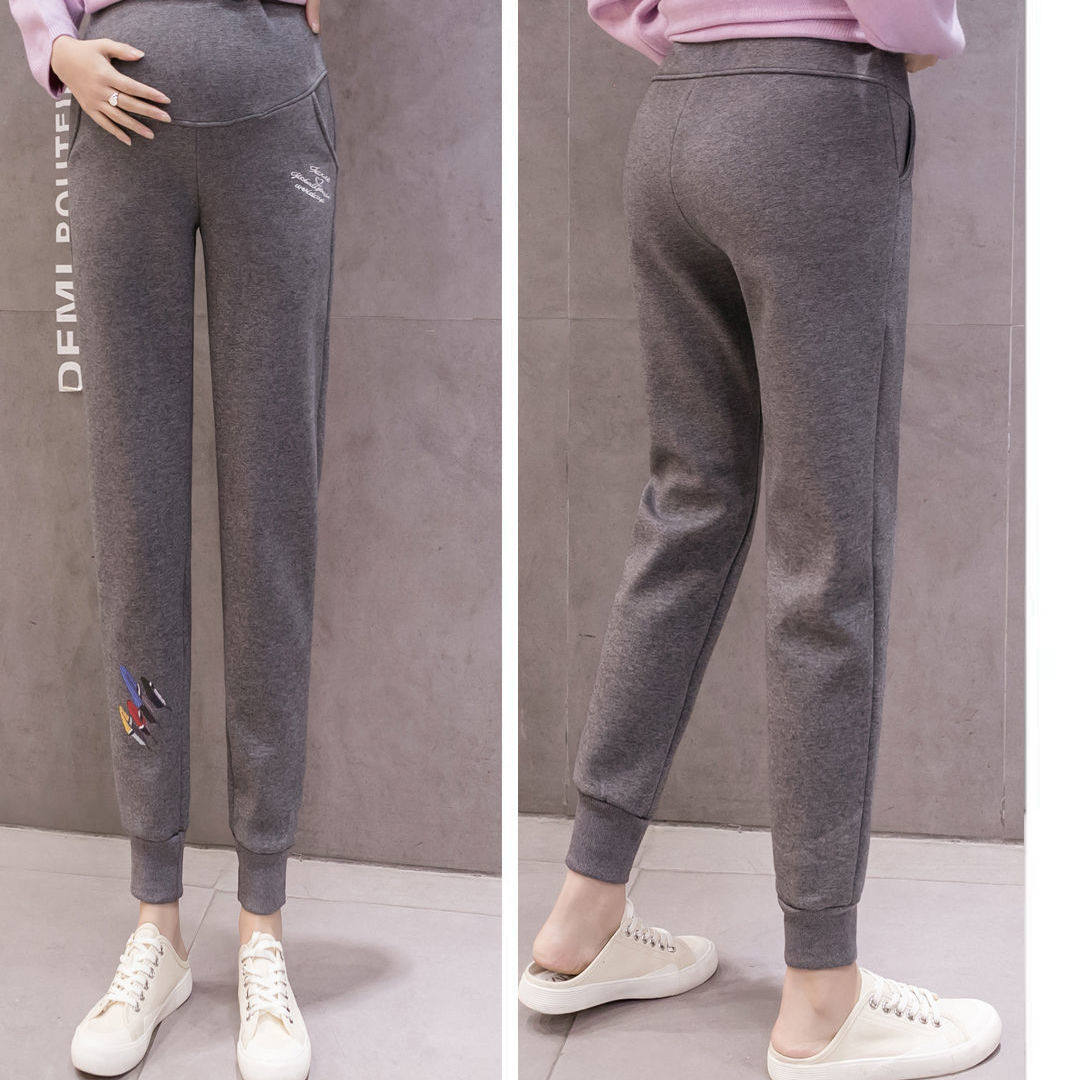 Pregnant women's casual belly pants spring and autumn thin section outerwear trendy mom drape loose straight wide-leg trousers spring and summer