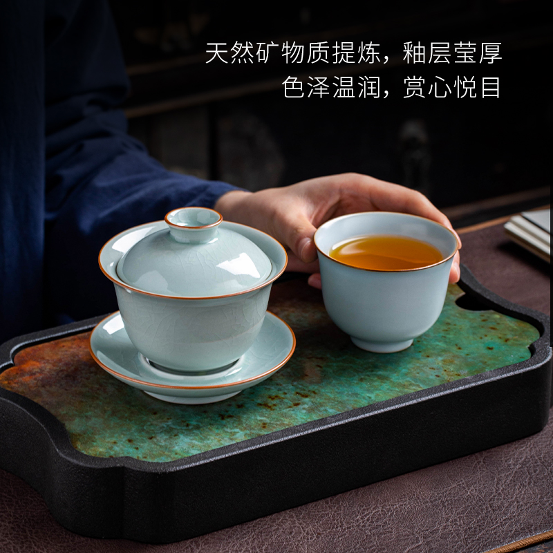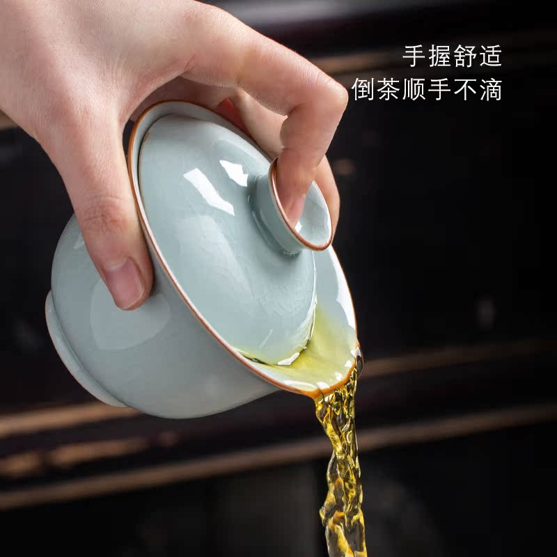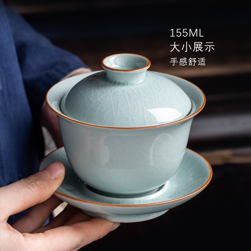Magic lotus Heaven Chanting Huaiyao Artisanal Ru Porcelain Triple cover Bowl Single Ru Kiln Large Number Personal Tea Bowl with lid