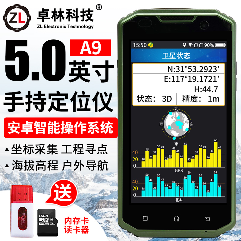Zhuolin A9 Android handheld machine GPS via latitude and longitude coordinate positioning instrument Beidou satellite navigation GIS data