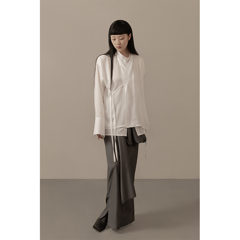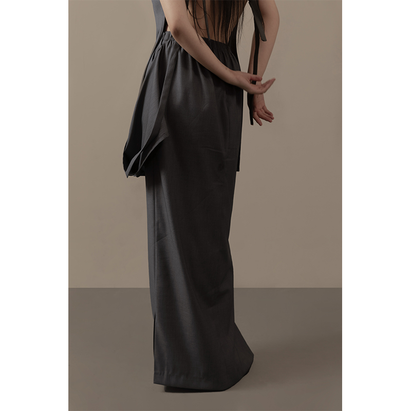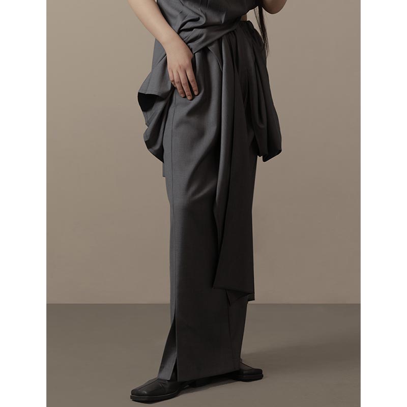 VAPOURBLUE irregular pleated slit skirt women's autumn design niche straight high waist skirt