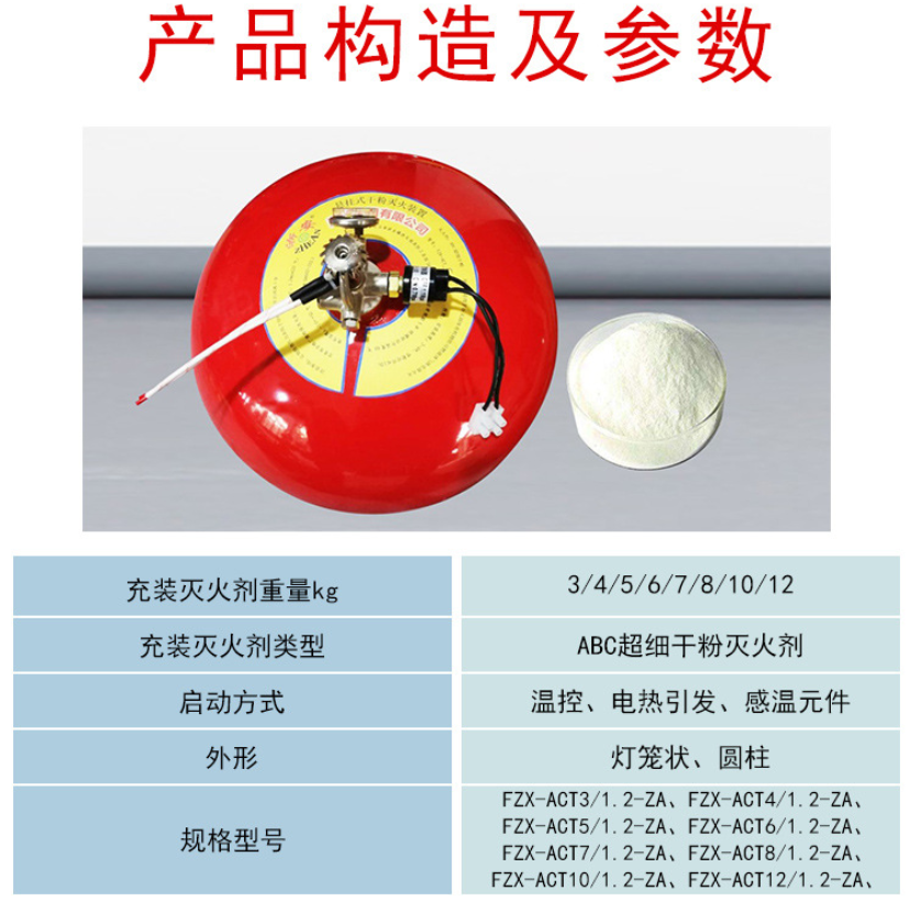 Zhejiang Fire Ultrafine Dry Powder Fire Extinguisher 3C Certified 4KG Suspended Automatic Fire Extinguisher Plant Manufacturer Direct-Taobao