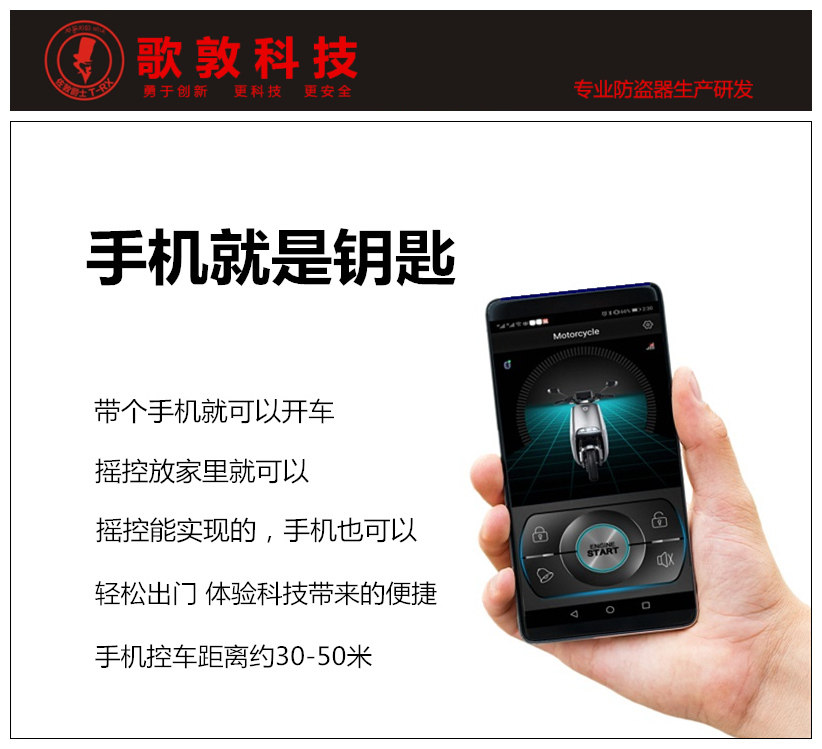 Motorcycle burglar alarm folding key remote control lock start lighter mobile phone Bluetooth APP control car universal