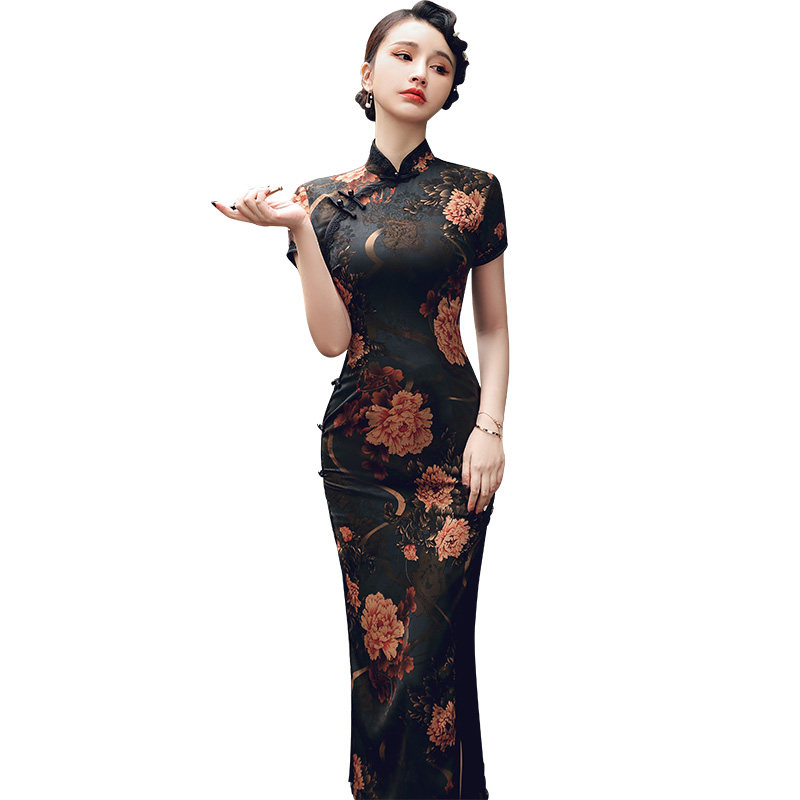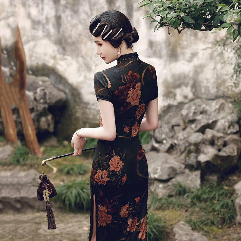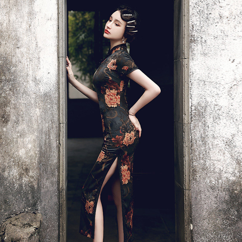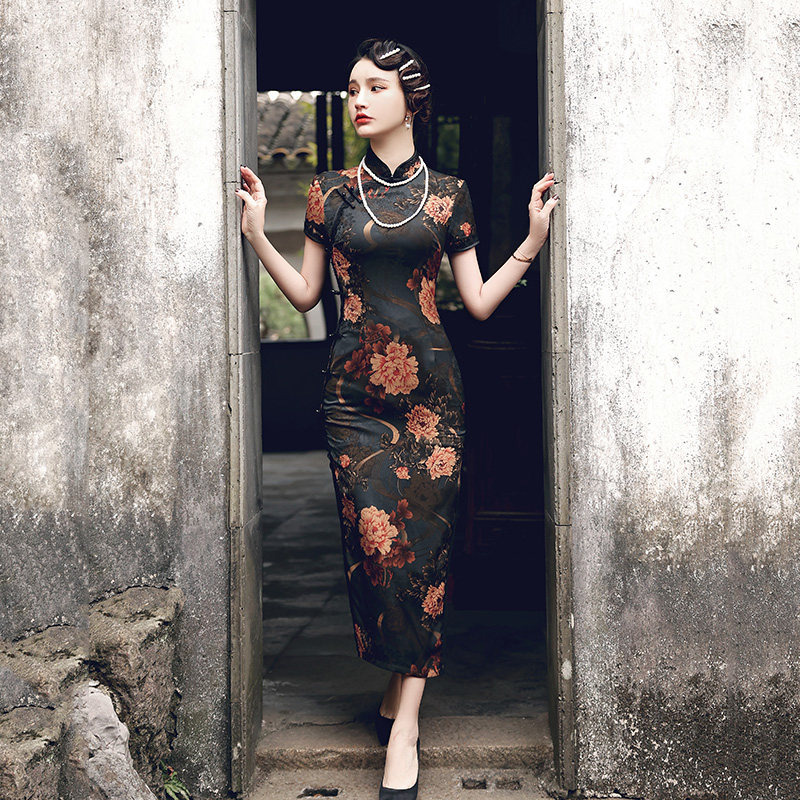 Long version of the qipao 2022 The new female Chinese national wind reigns with short sleeves elegance Old Shanghai Improved version of the dress
