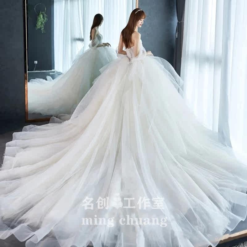 Light Master Wedding dress 2021 new bride shoulder French small tailer - tailer series super fairy temperament